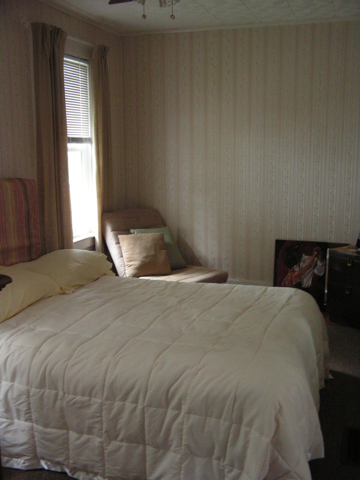 Another room is showing some real progress here at the Capers. Every day we get closer and closer to living in our home, not just the old house of some elderly couple. haha Okay, so let's remember what the guest bedroom looked like earlier this year.